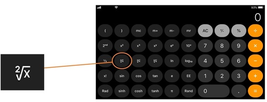 平方根を求めるには、iPhoneを横にして、電卓アプリを開き、27.44と入れた後に、下のボタンを押します(androidの方は、申し訳ありませんがご自分で関数電卓のアプリを探してみてください)。