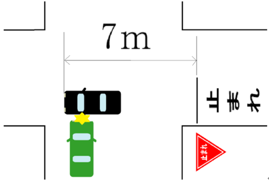 次に、一時停止線から、衝突時の相手の車の先端までの長さを測ります。