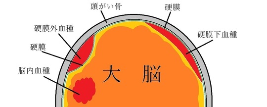 出血が続くと、血種が脳を圧迫する危険があります。頭がい骨内部の、脳を収納する容量は決まっていますから、血がたまるとその分スペースを食ってしまうのです。したがって、血種を受けた箇所を中心にぎゅうぎゅう詰めになり、脳細胞が圧迫されていきます。圧迫した状態が続くと、脳は障害を受けます