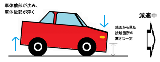 接触箇所の地面からの高さは一定なので、自動車が前のめりになると、ボディの上の方に傷が付くからです。