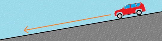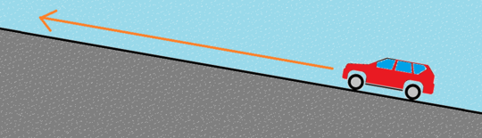 一方、下のような上り坂では、同じ速度であっても、平坦な道にくらべて走行距離(スリップ痕)は短くなります。スリップ痕が同じ長さでも平坦な道の場合と比べ、スピードは大きかったことになります。