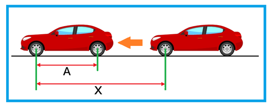 仮に、現実の自動車のホイールベースの長さが2.8mだとしたら、現実の移動距離は2.8m×2=5.6mとなります。