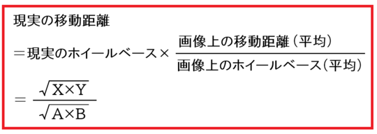 移動距離がホイールベースの2倍になっていることがわかったので、現実のホイールベースの数値に2を掛けることで、実際の移動距離がわかります。