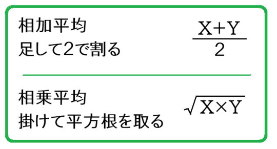 我々になじみ深いのは相加平均の方ですね。
